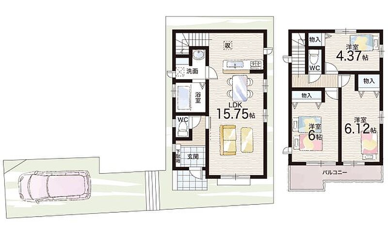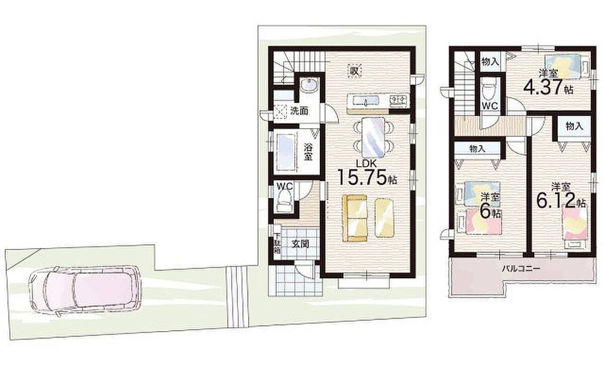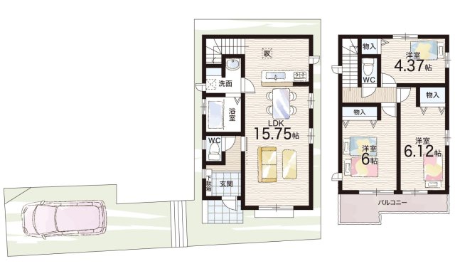 - ※完成予想図やCG合成画像は、門塀・植栽・庭・外観等、実際とは多少異なる場合があります。