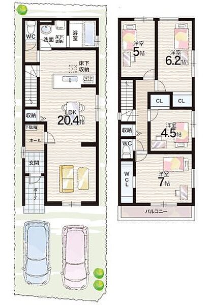 - ※完成予想図やCG合成画像は、門塀・植栽・庭・外観等、実際とは多少異なる場合があります。