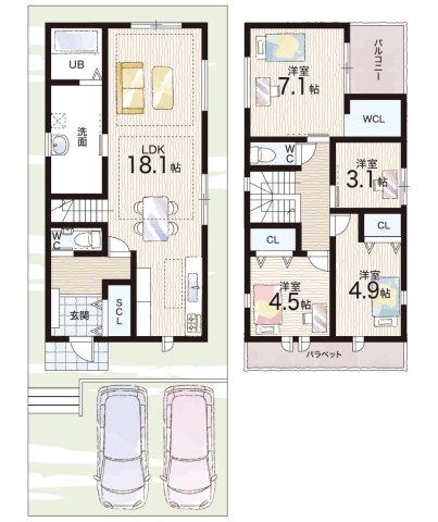 - ※完成予想図やCG合成画像は、門塀・植栽・庭・外観等、実際とは多少異なる場合があります。