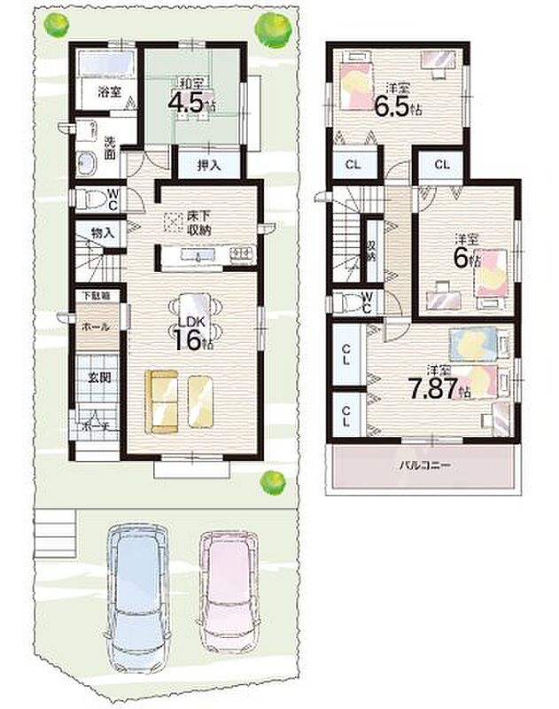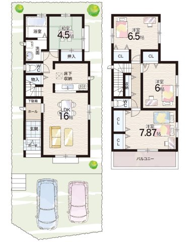 - ※完成予想図やCG合成画像は、門塀・植栽・庭・外観等、実際とは多少異なる場合があります。