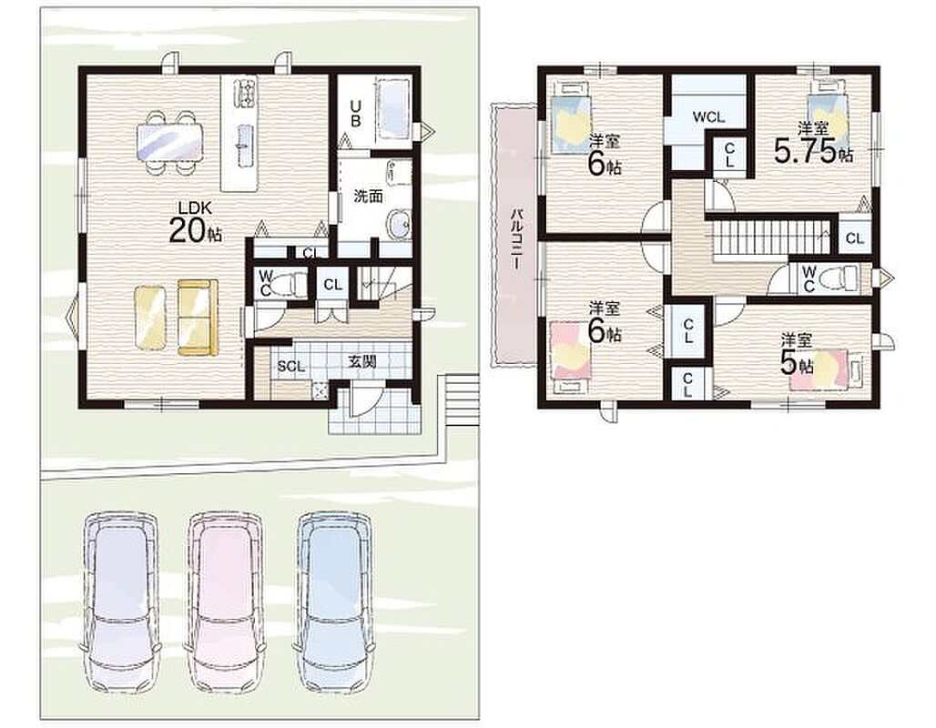 - ※完成予想図やCG合成画像は、門塀・植栽・庭・外観等、実際とは多少異なる場合があります。