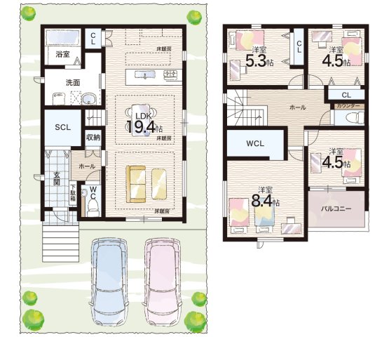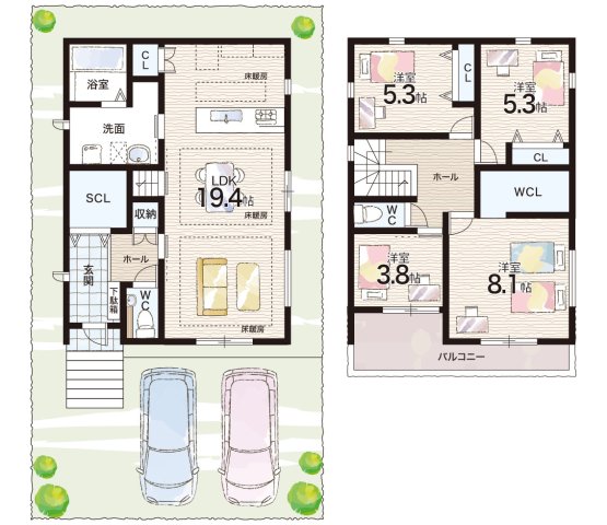 - ※完成予想図やCG合成画像は、門塀・植栽・庭・外観等、実際とは多少異なる場合があります。