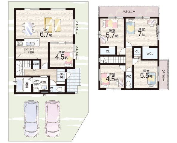 - ※完成予想図やCG合成画像は、門塀・植栽・庭・外観等、実際とは多少異なる場合があります。