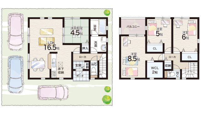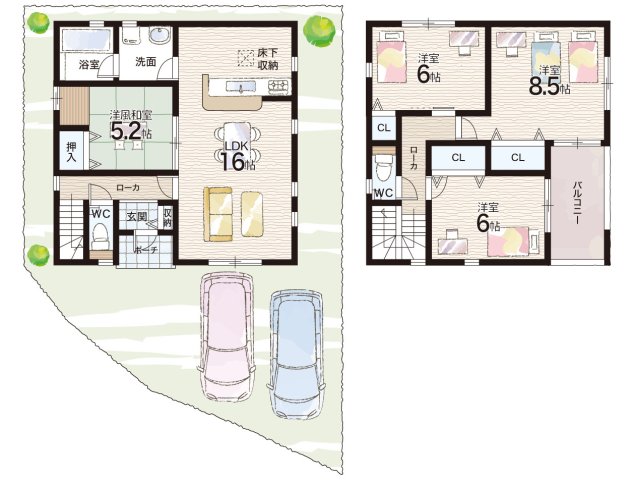 - ※完成予想図やCG合成画像は、門塀・植栽・庭・外観等、実際とは多少異なる場合があります。