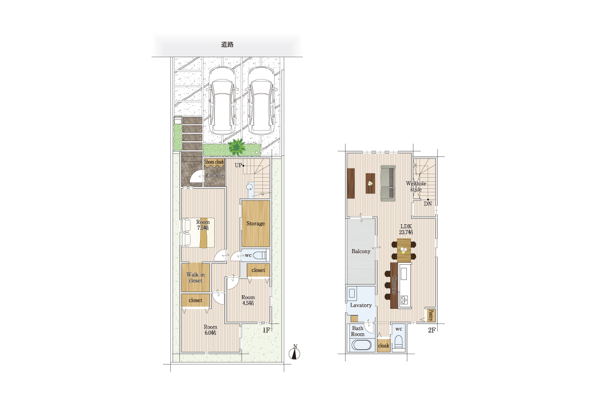 - ※完成予想図やCG合成画像は、門塀・植栽・庭・外観等、実際とは多少異なる場合があります。