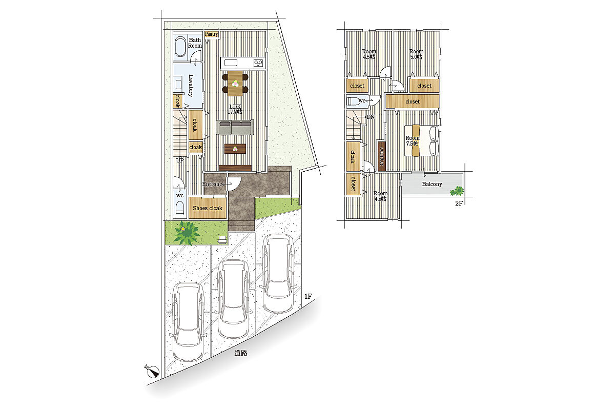 - ※完成予想図やCG合成画像は、門塀・植栽・庭・外観等、実際とは多少異なる場合があります。