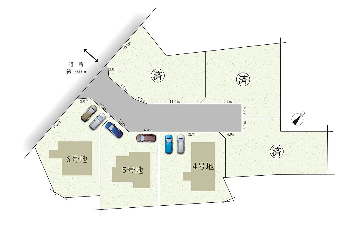 | 駐車場 | - | 道路の幅員 | 西側幅員約10.0mの公道、幅員約6.0mの開発道路に接する |