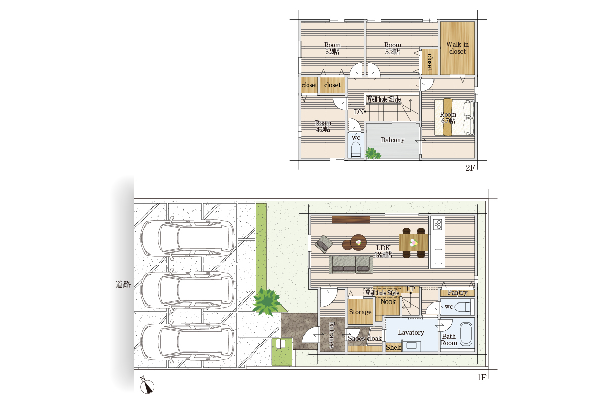 【2026年5月中旬完成予定】並列駐車3台可・18.8帖LDK・吹抜け・納戸・ヌック・山之手小徒歩7分