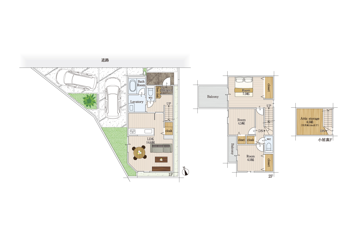- ※完成予想図やCG合成画像は、門塀・植栽・庭・外観等、実際とは多少異なる場合があります。