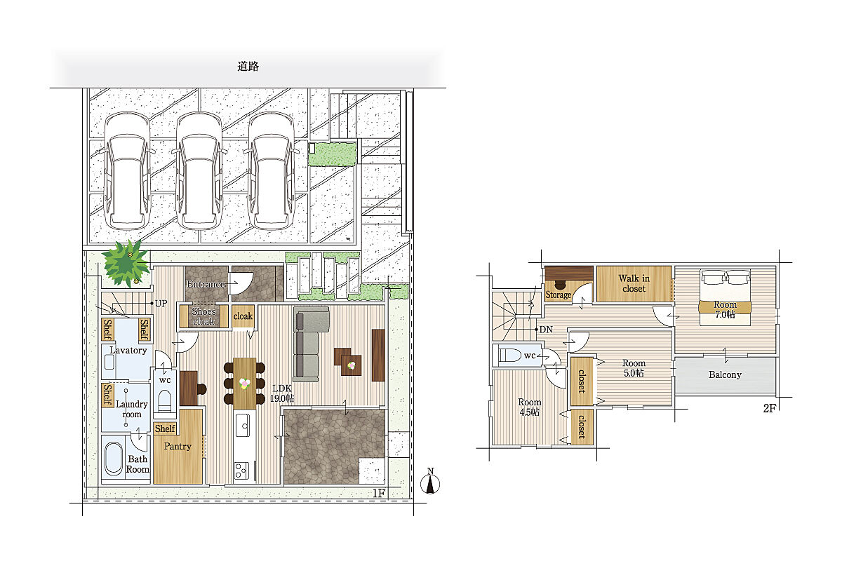 ・ゆとりある駐車スペースは並列駐車3台可能