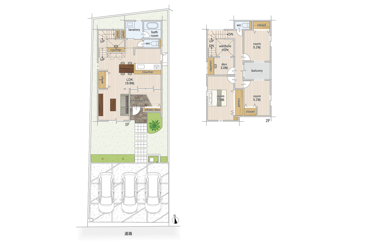 - ※完成予想図やCG合成画像は、門塀・植栽・庭・外観等、実際とは多少異なる場合があります。
