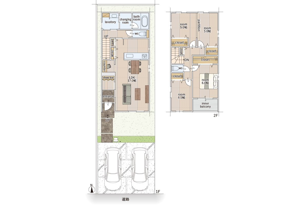 - ※完成予想図やCG合成画像は、門塀・植栽・庭・外観等、実際とは多少異なる場合があります。