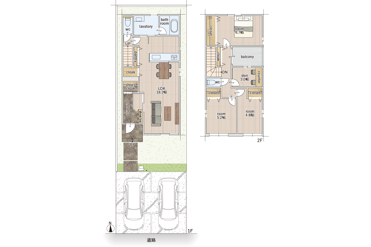 | 建物面積 | 98.14m2~104.35m2 | 土地面積 | 124.19m2~132.39m2 |