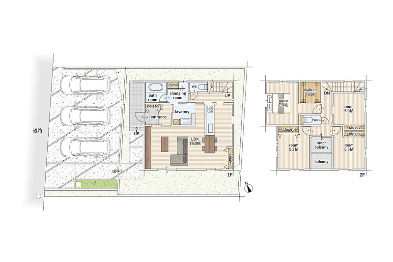 並列駐車3台可・「知多半田」駅徒歩7分・19帖LDK・ファミリークローク