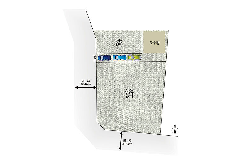 | 駐車場 | - | 道路の幅員 | 私道負担なし、西側幅員約4.6mの公道に接する |