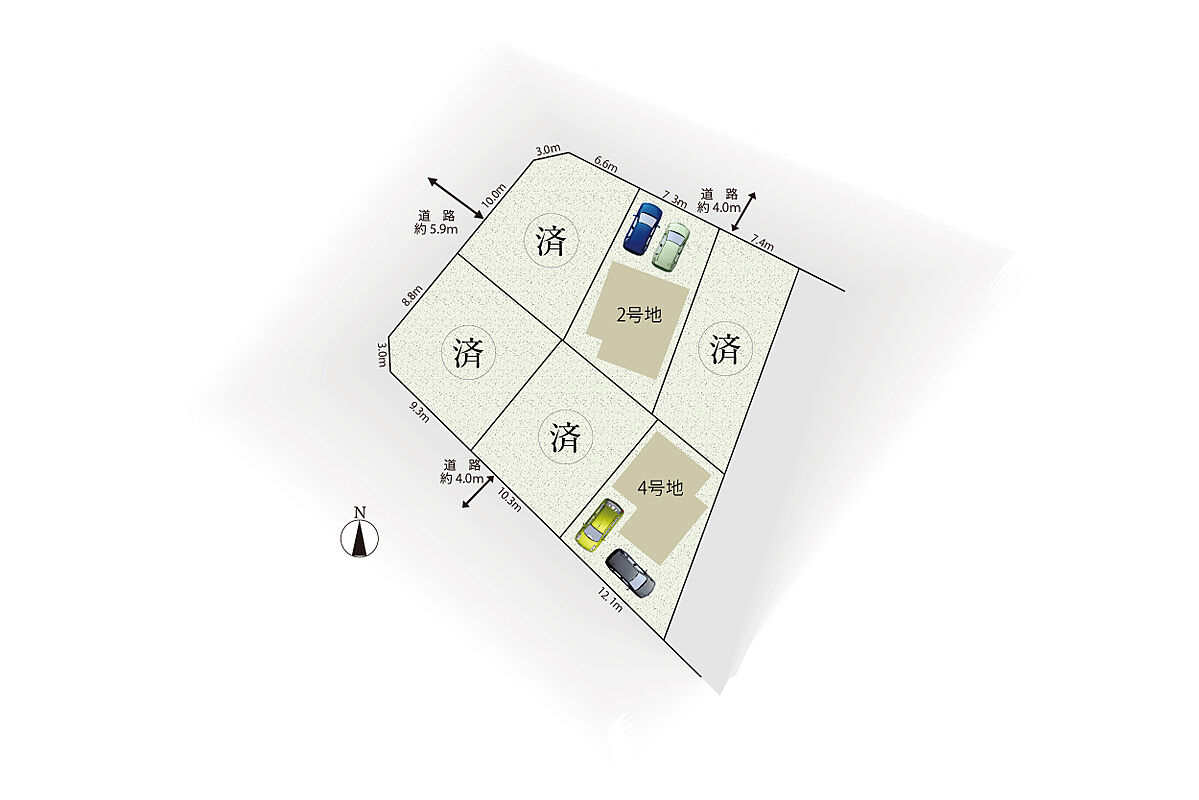 | 駐車場 | - | 道路の幅員 | 私道負担なし、北東側幅員約4.0m、南西側幅員約4.0mの公道に接する |