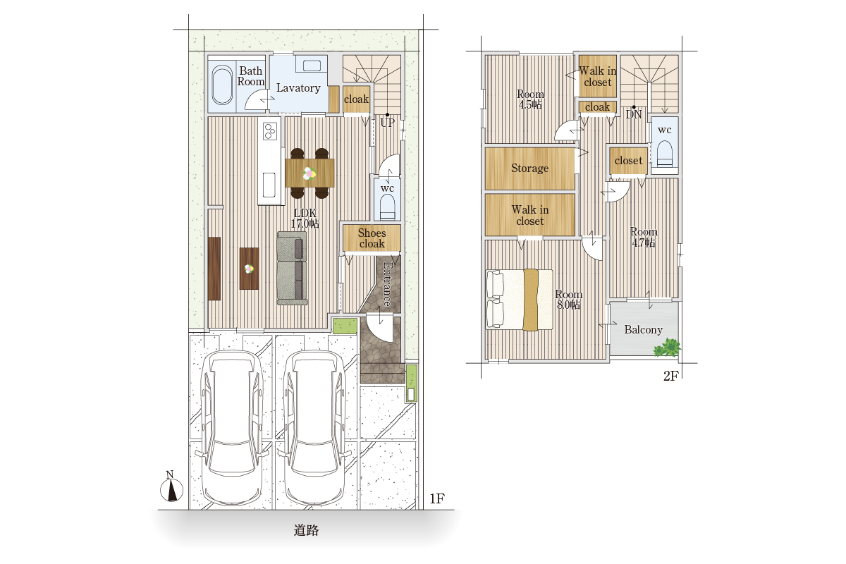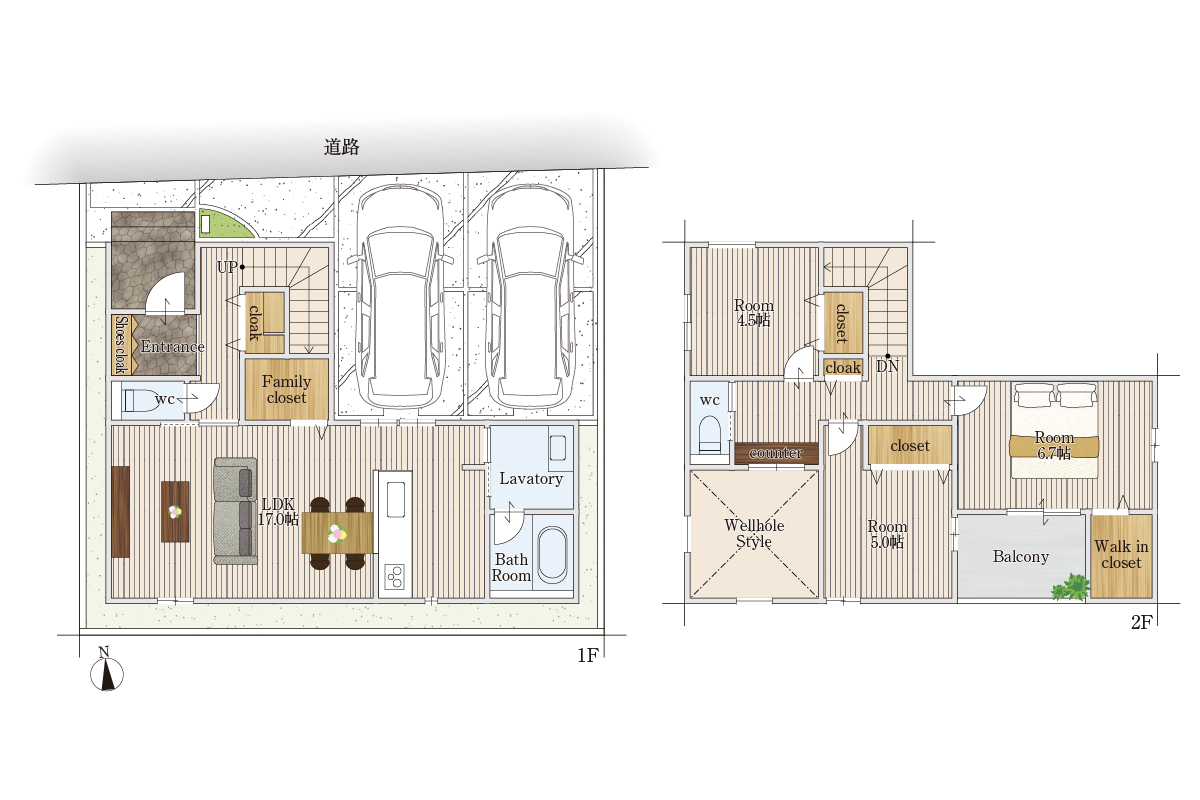 明るい吹き抜け、納戸、ファミリークローゼット等まるで注文住宅のような各号地設計士こだわりの間取り。
