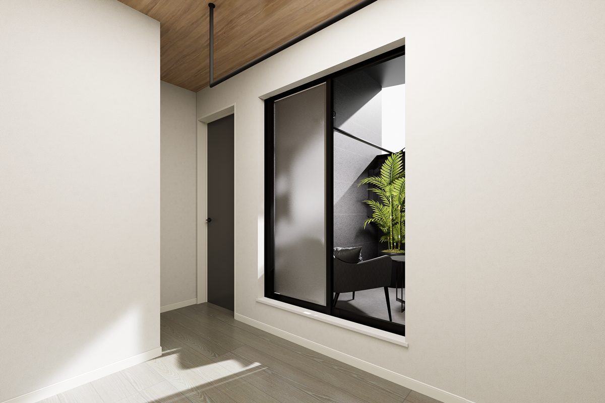 電動シャッター、広めの洗面室、ウォークスルータイプのシューズクローゼットなどワンランク上の暮らしが実現する住まいです。