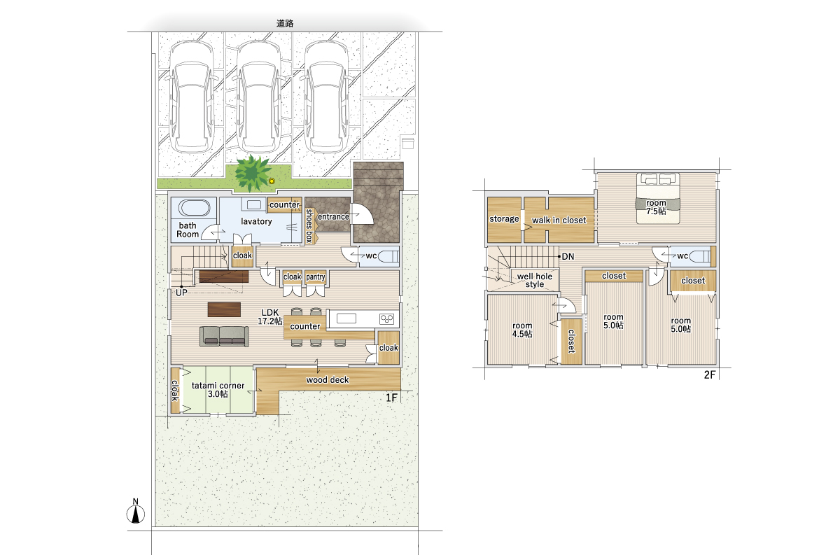 - ※完成予想図やCG合成画像は、門塀・植栽・庭・外観等、実際とは多少異なる場合があります。