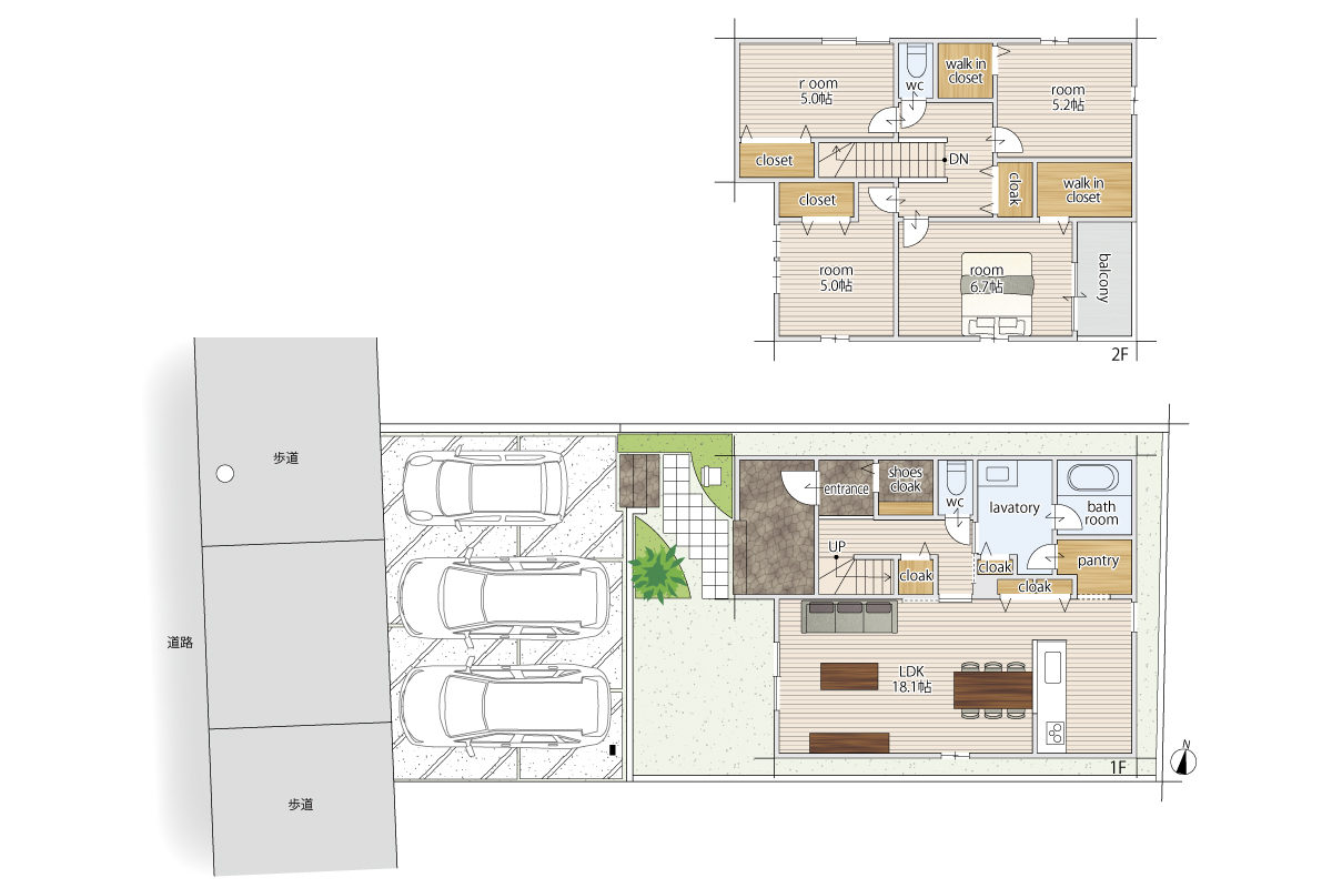 - ※完成予想図やCG合成画像は、門塀・植栽・庭・外観等、実際とは多少異なる場合があります。