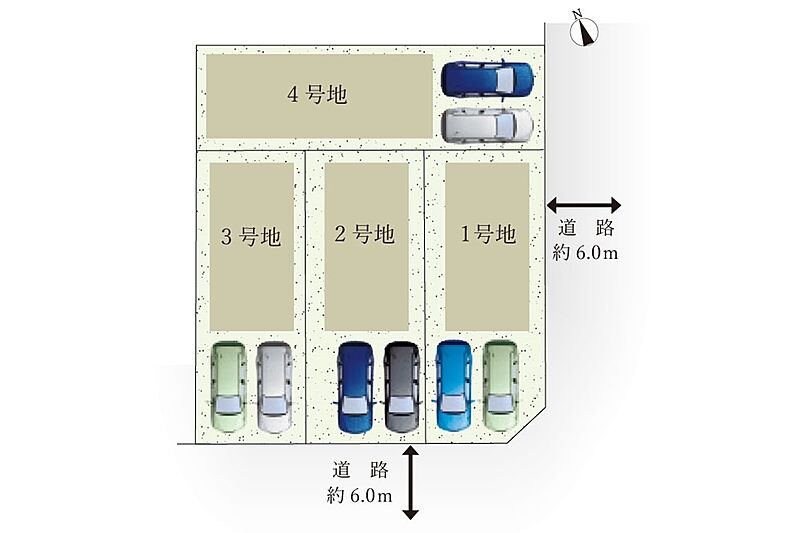 | 駐車場 | 2台 | 道路の幅員 | 南側幅員約6.0m、東側幅員約6.0mの公道に接する |