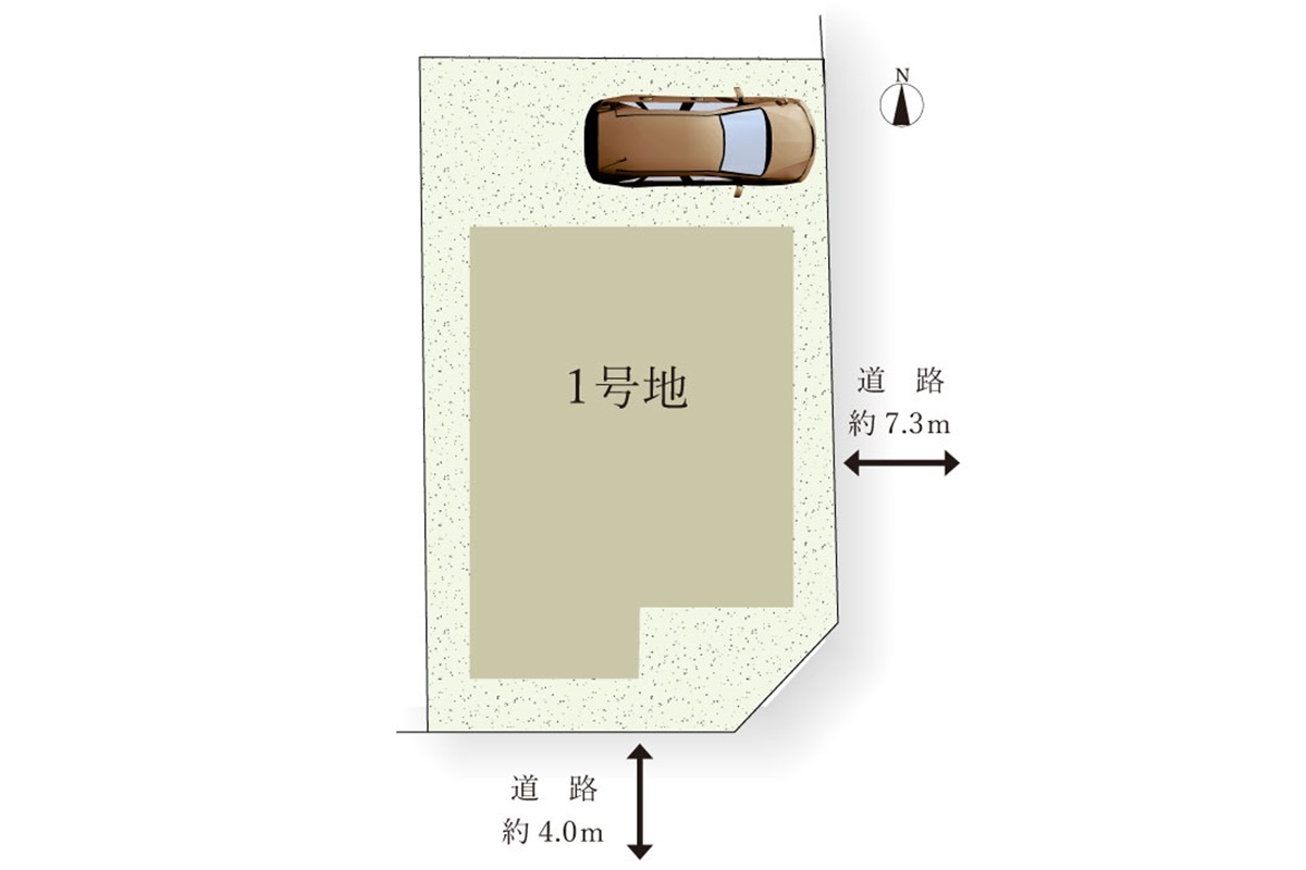 | 駐車場 | 1台 | 道路の幅員 | 南側幅員約4.0m、東側幅員約7.3mの公道に接する |