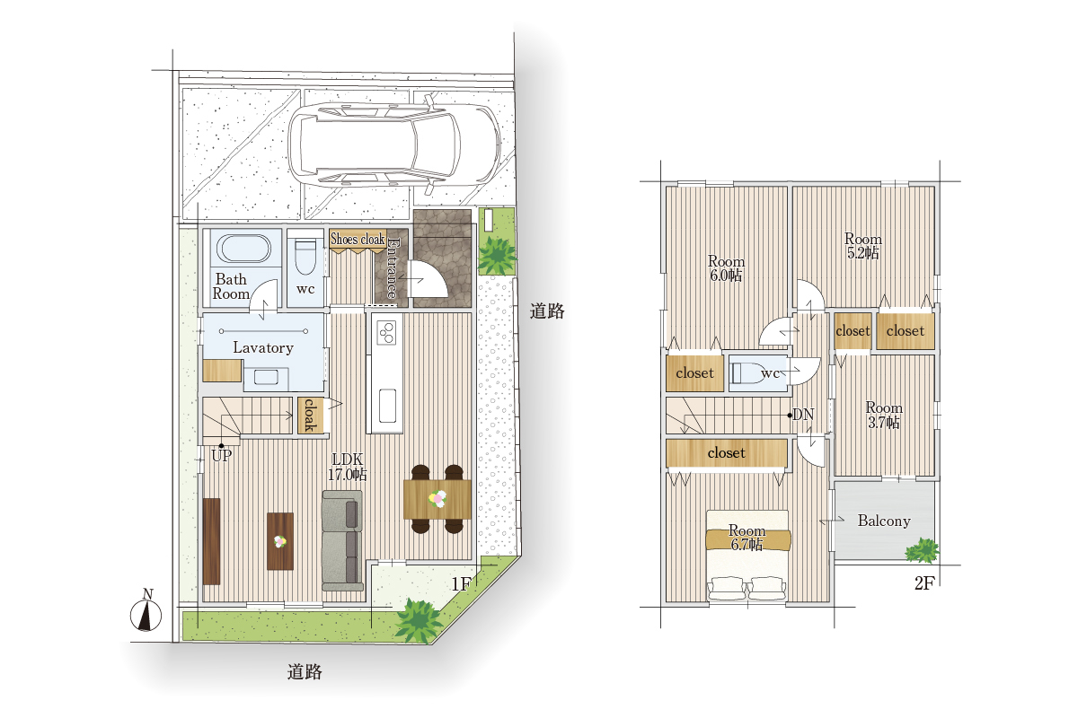 - ※完成予想図やCG合成画像は、門塀・植栽・庭・外観等、実際とは多少異なる場合があります。