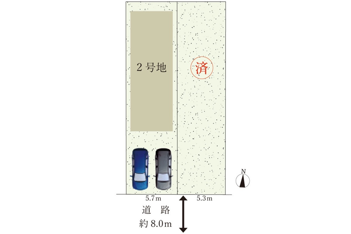| 駐車場 | 2台 | 道路の幅員 | 南側幅員約8.0mの公道に接する |