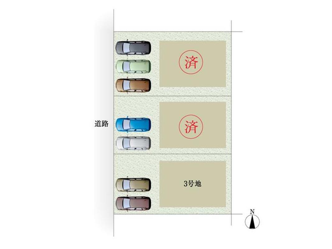 | 駐車場 | 2台 | 道路の幅員 | 道路幅:5.3m、コンクリート舗装、西側幅員約5.3mの公道に接する |
