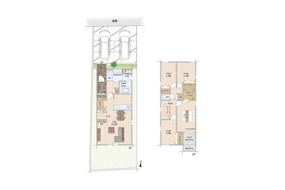 - ※完成予想図やCG合成画像は、門塀・植栽・庭・外観等、実際とは多少異なる場合があります。