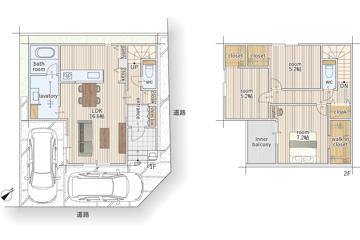| 建物面積 | 99.48m2・102.5m2 | 土地面積 | 93.67m2・99.25m2 |