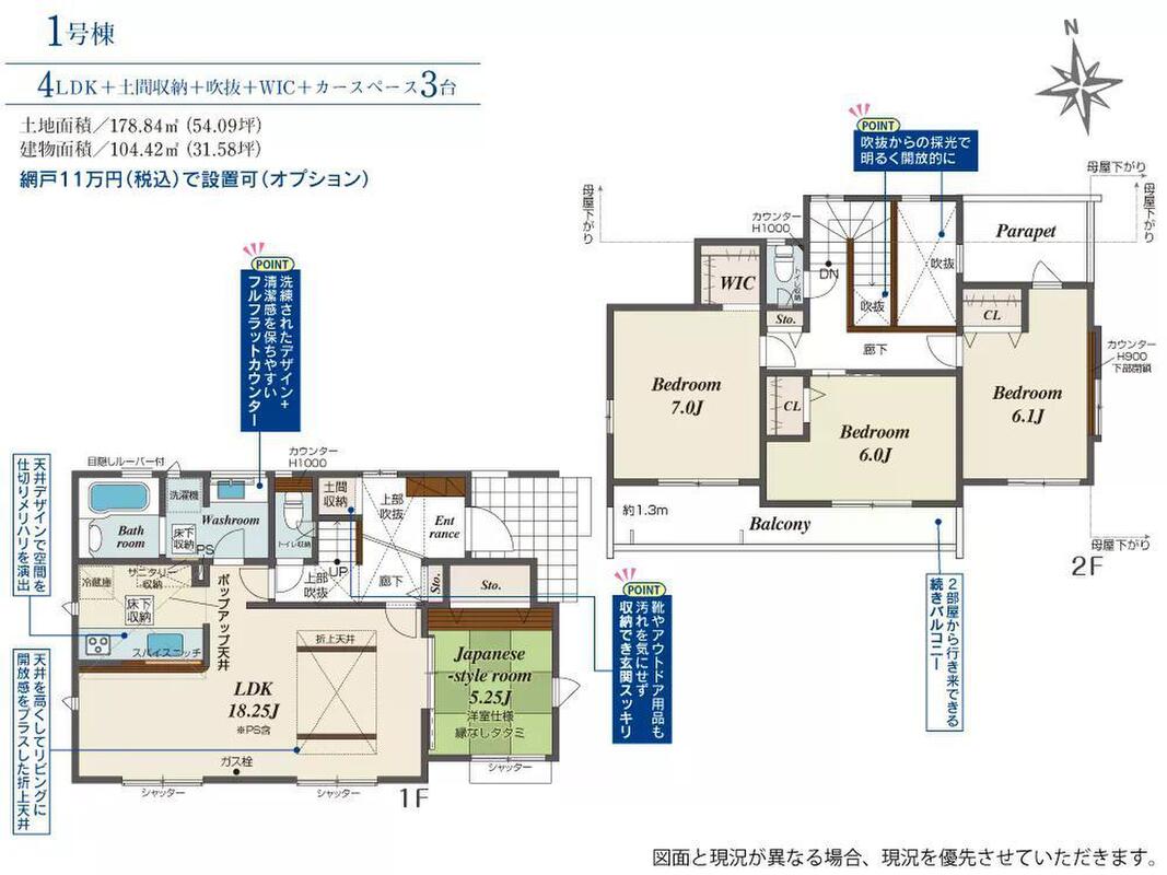 | 建物面積 | 104.42m2 | 土地面積 | 178.84m2 |