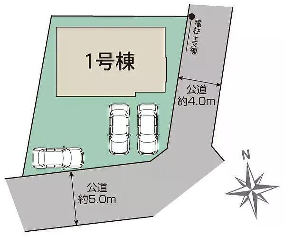 | 駐車場 | 3台 | 道路の幅員 | 道路幅:4m~5m、アスファルト舗装、 角地 : 南 5.04m 公道、東 4m 公道 |