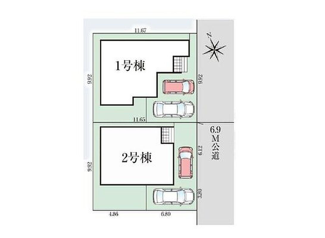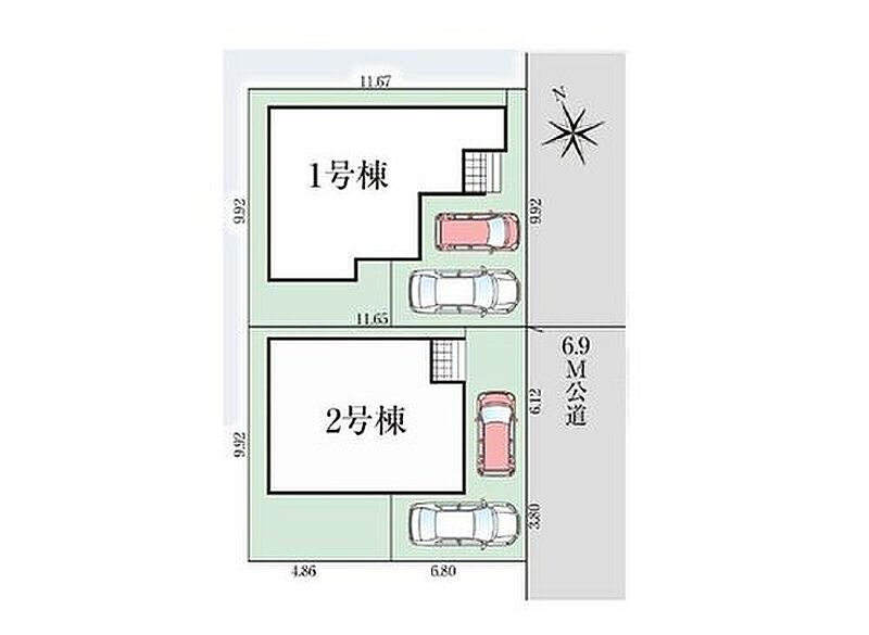 | 駐車場 | 2台(車種による) | 道路の幅員 | 道路幅:6.9m、アスファルト舗装 |