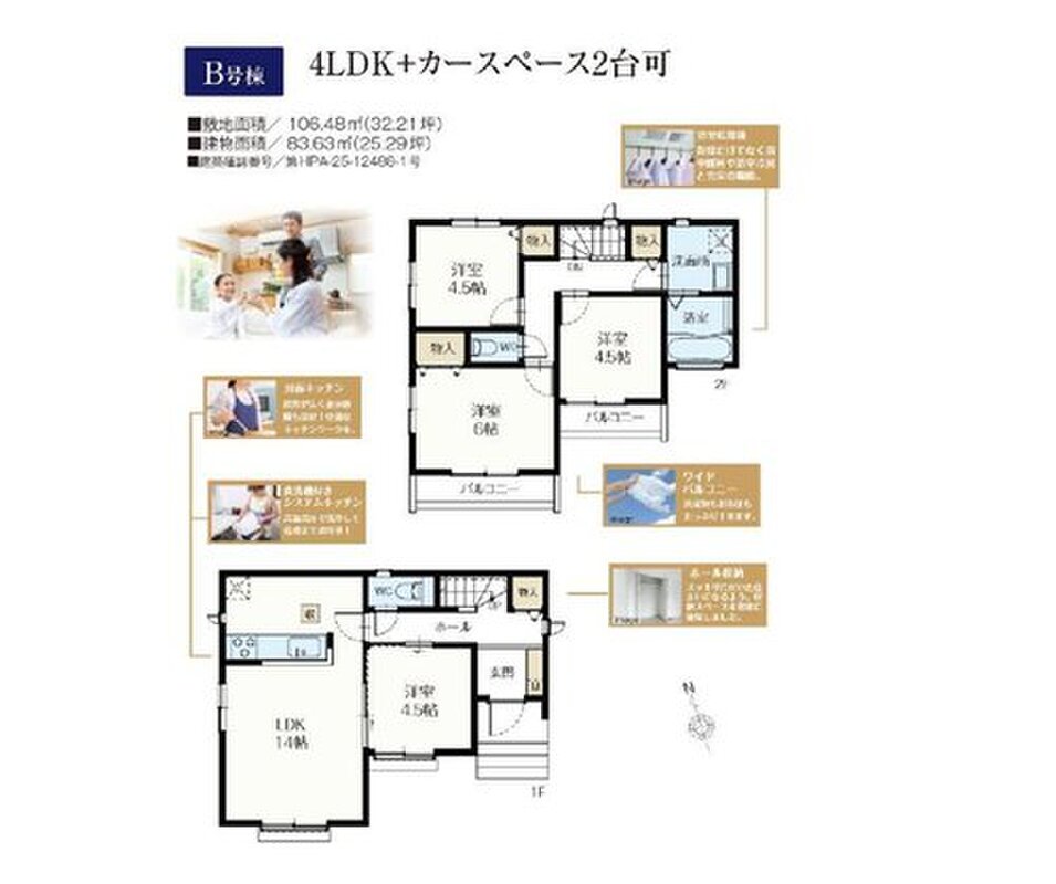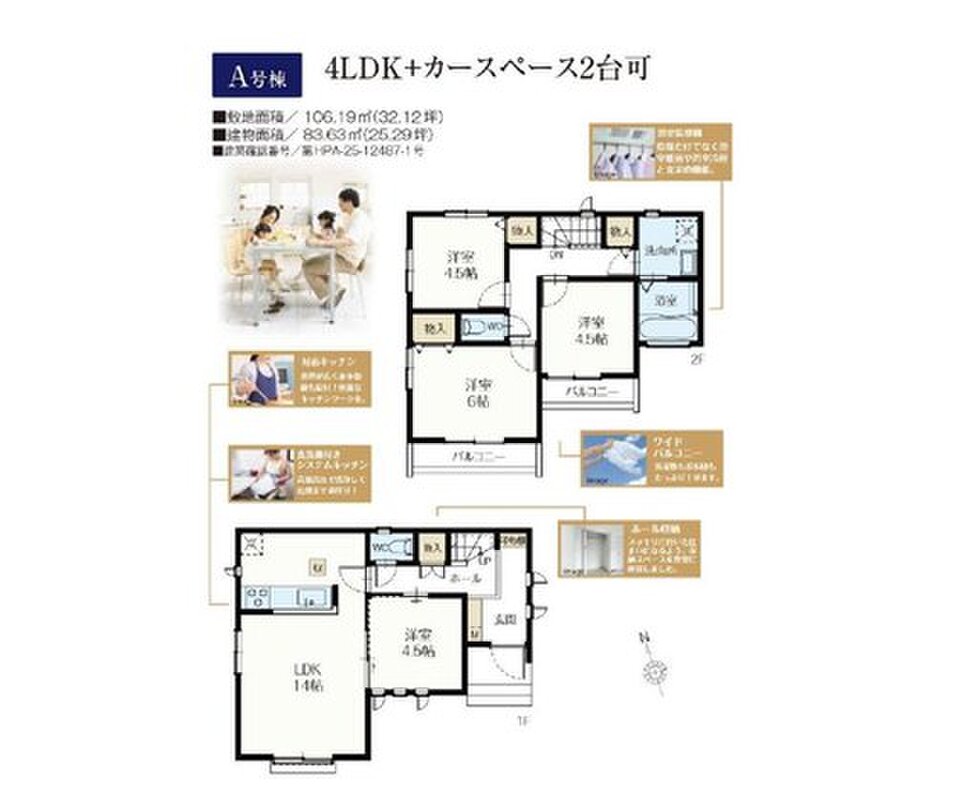 | 建物面積 | 83.63m2・86.63m2 | 土地面積 | 106.19m2・106.48m2 |