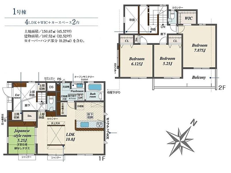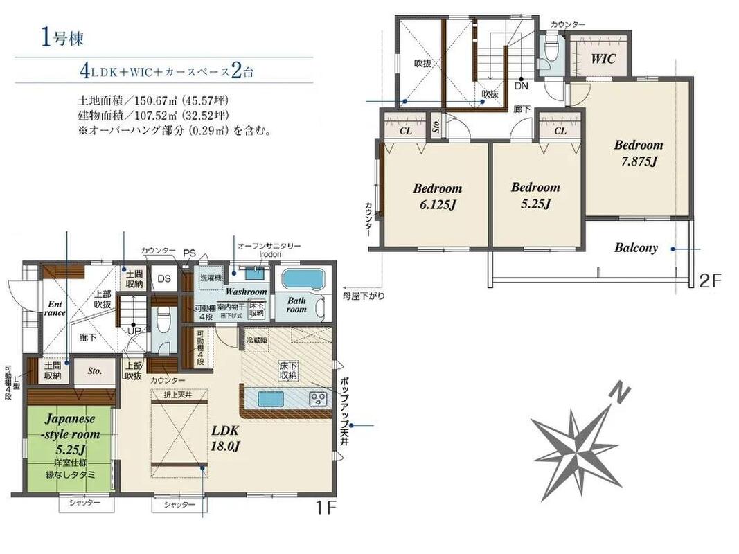 | 建物面積 | 107.52m2 | 土地面積 | 150.67m2 |