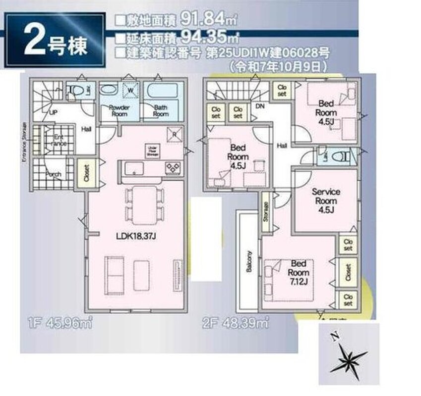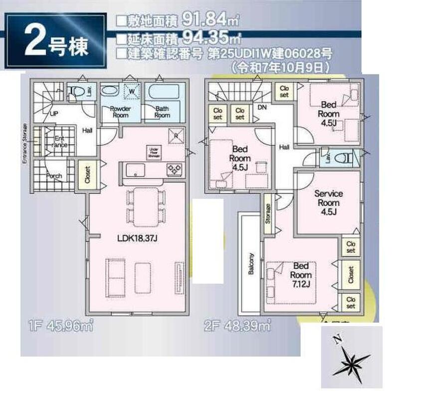 | 建物面積 | 94.35m2・95.37m2 | 土地面積 | 91.74m2・91.84m2 |