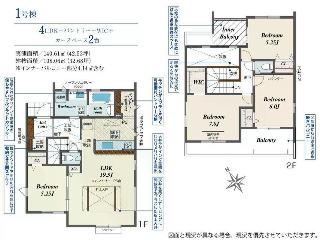 | 建物面積 | 108.06m2 | 土地面積 | 140.61m2 |