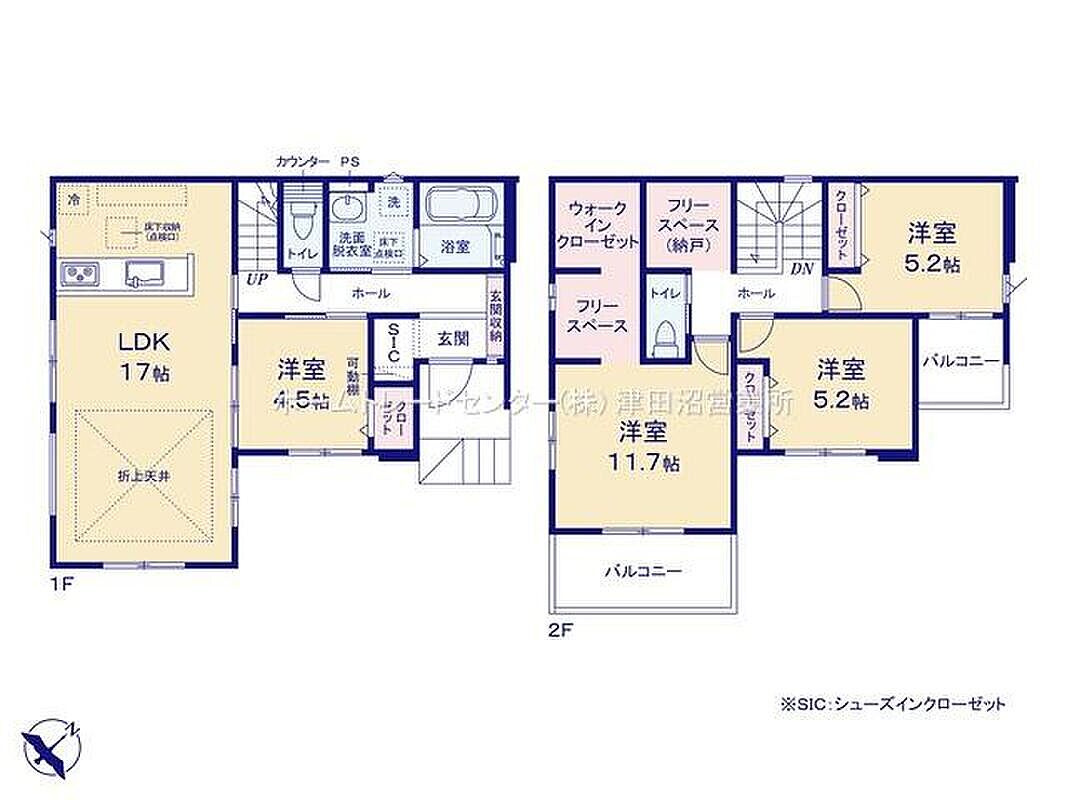 京成松戸線・東葉高速鉄道「北習志野」駅徒歩23分♪2階には多目的に利用できるフリースペース2ヶ所付の間取りプラン♪贅沢が詰まった限定1棟の邸宅♪広いお庭付き♪ぜひお気軽にお問い合わせください♪