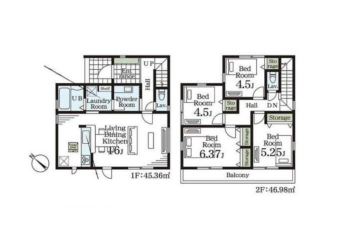 2号棟 間取り 4LDK 価格 3480万円 建物面積 97.2m2 土地面積 135.09m2 -