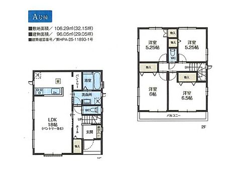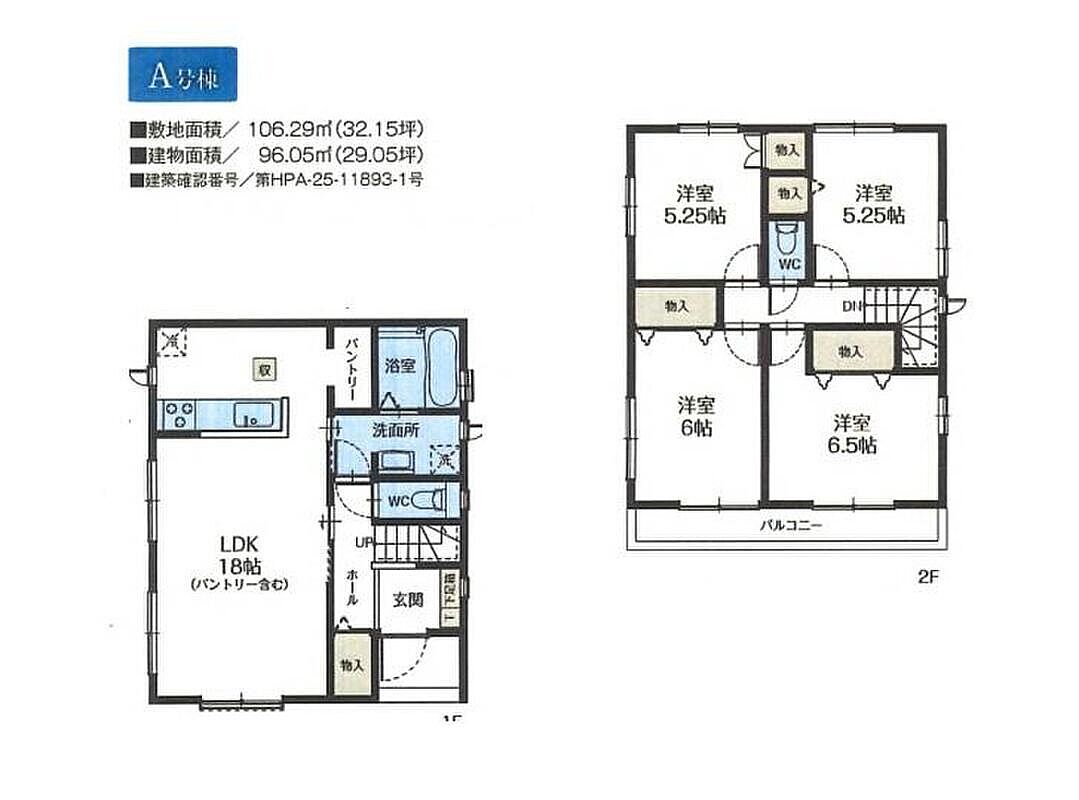 | 建物面積 | 91.91m2・96.05m2 | 土地面積 | 106.29m2・114.38m2 |