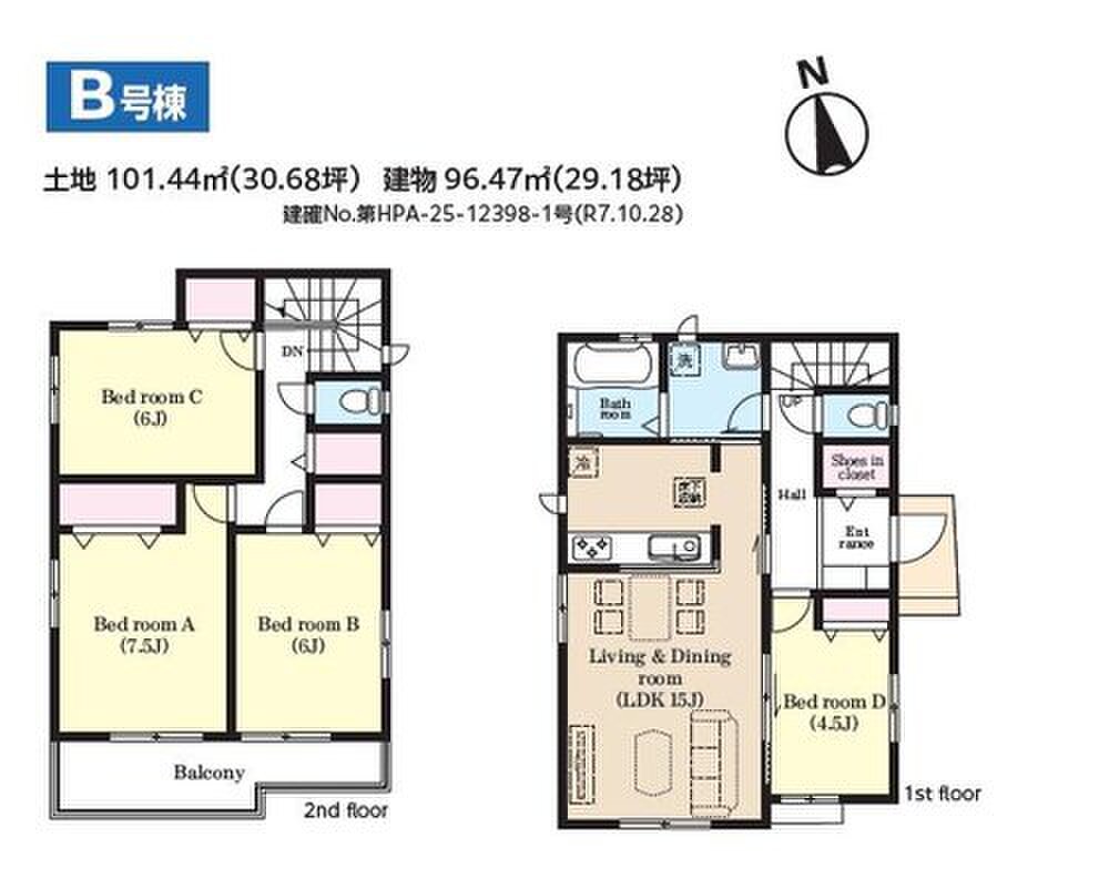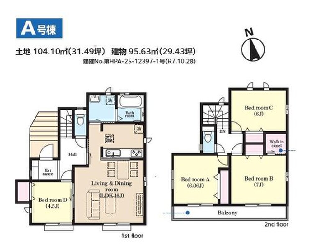 | 建物面積 | 95.63m2・96.47m2 | 土地面積 | 101.44m2・104.1m2 |