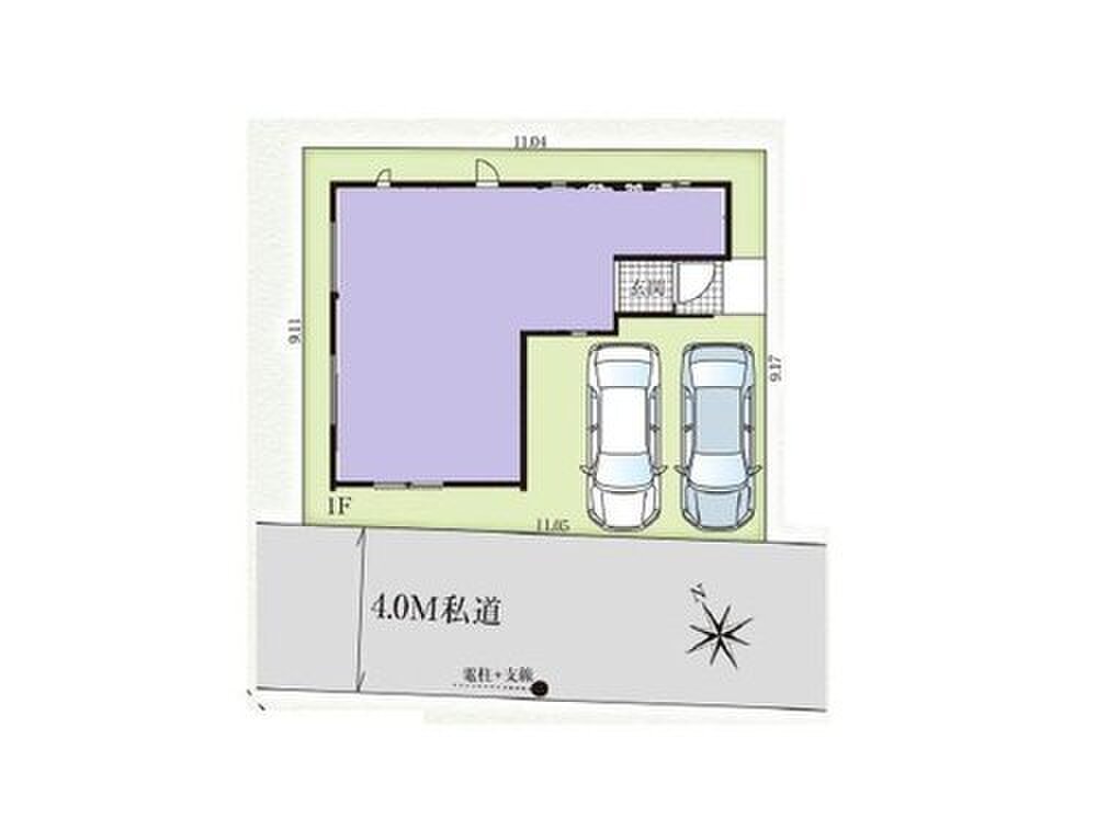 | 駐車場 | 2台 | 道路の幅員 | 道路幅:4m、アスファルト舗装、一方 : 南西 4m 私道 |