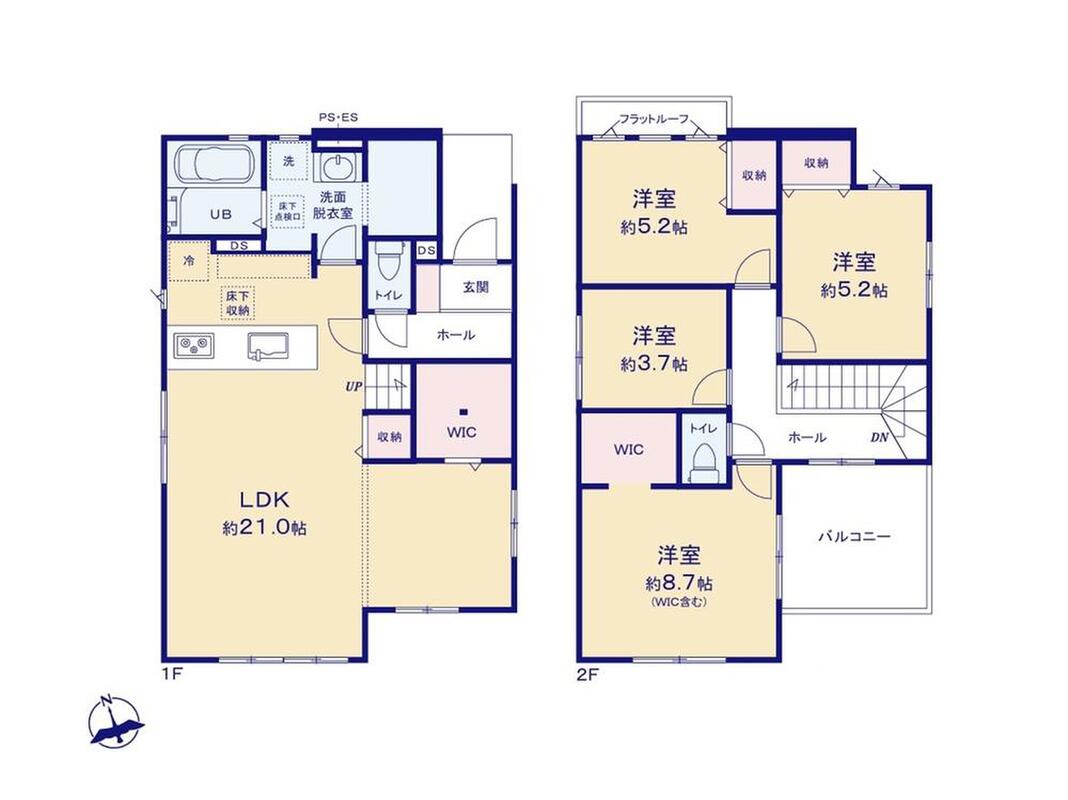 リビング広々21帖!WIC付の4LDK!駐車2台可