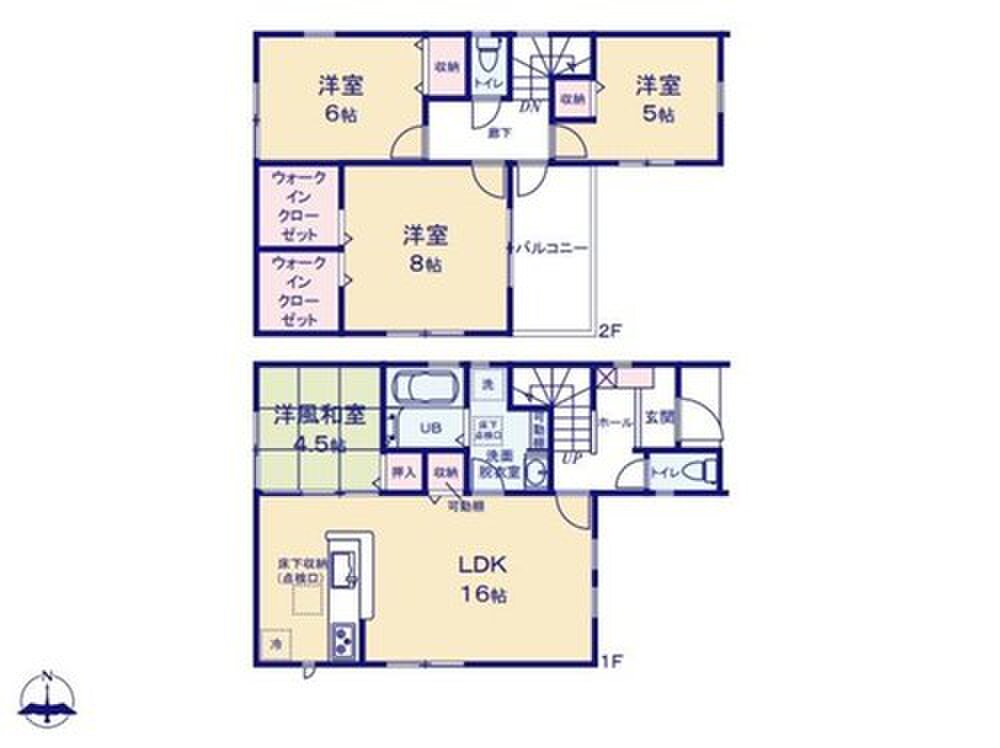 | 建物面積 | 96.39m2・97.2m2(29.15坪・29.40坪) | 土地面積 | 115.8m2・115.98m2(35.02坪・35.08坪) |