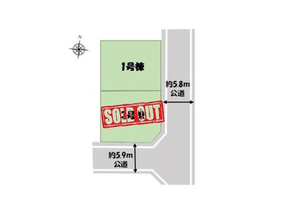 | 駐車場 | 2台 | 道路の幅員 | 道路幅:5.8m・5.9m、アスファルト舗装、東側約5.8m公道、南側約5.9m公道 |