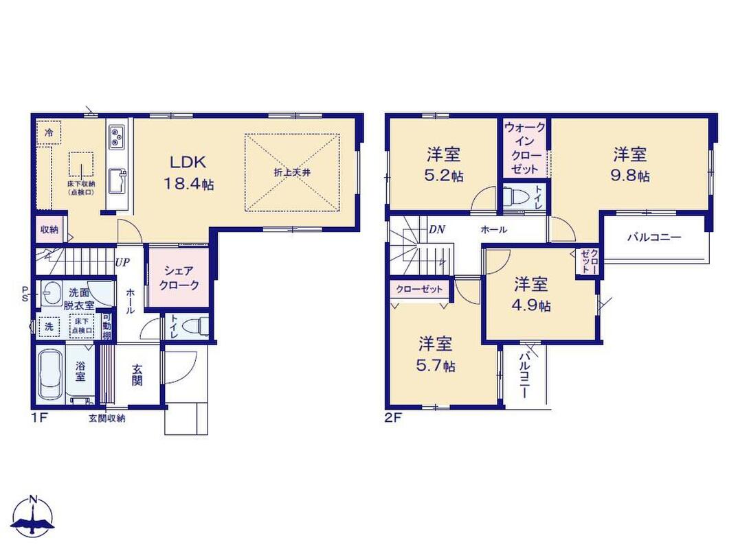 主寝室9.8帖超!WICやSIC等収納充実の全2棟!