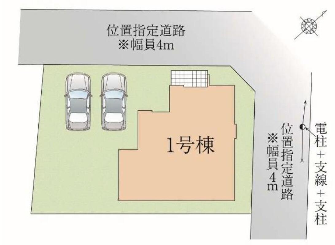 | 駐車場 | 2台 | 道路の幅員 | 道路幅:4m、アスファルト舗装、角地 : 北西 4m 私道、北東 4m 私道 |