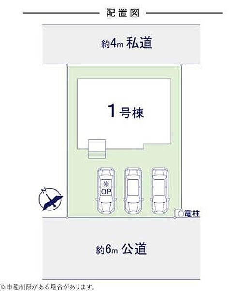 | 駐車場 | 2台(※車種による) | 道路の幅員 | 道路幅:4m~6m、アスファルト舗装、南西 6m 公道、北東 4m 私道 |