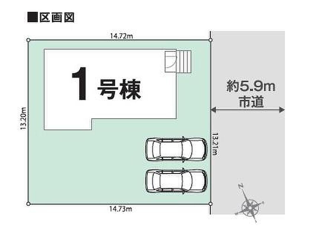 | 駐車場 | 2台 | 道路の幅員 | 道路幅:5.9m、アスファルト舗装、 北東側約5.9m 公道 |